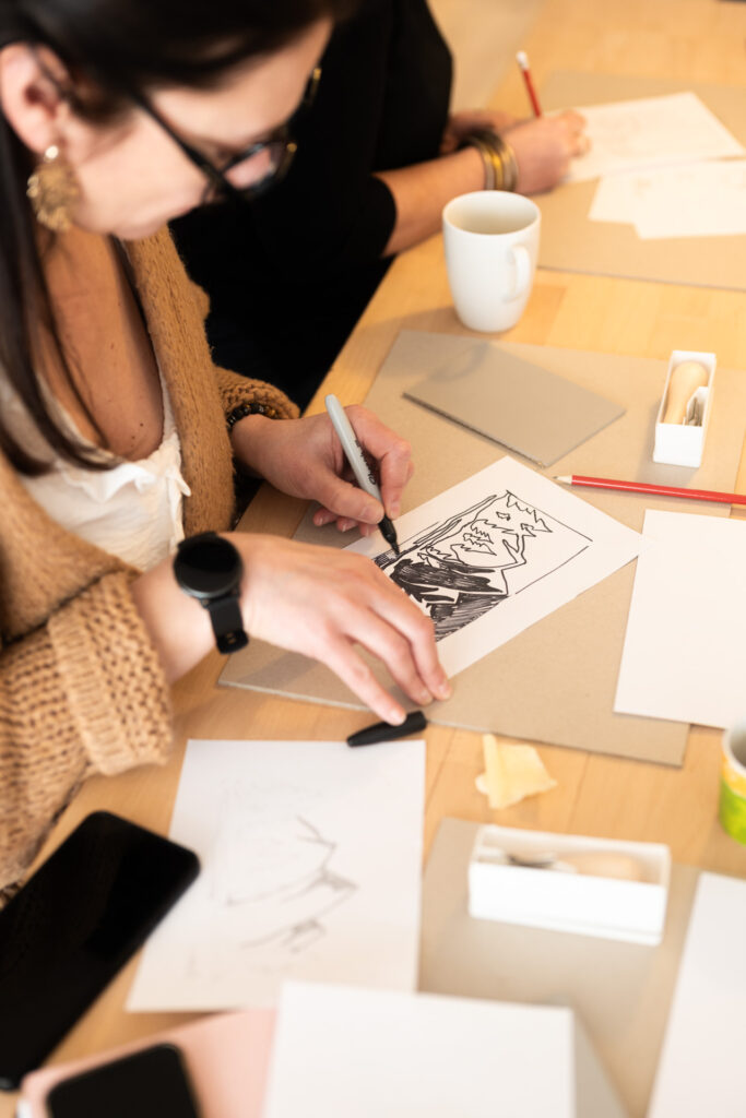 Dans un premier temps, nous lançons les ateliers de linogravure. 6 personnes max pour un cours de 3h. Au programme, les outils, une linogravure format 10 x 15 cm par personne… et on imprime le tout sur papier en 5 exemplaires… Créneaux et tarifs disponibles sur nos réseaux !
